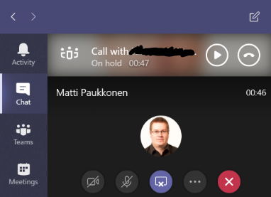 - If you are in a call and you start a screen sharing in another chat: the current call goes to hold