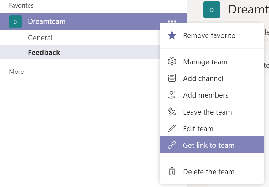 When you have created email message it might be a good idea to include a link to Team or Channel (depending on your need) in the email message: making it easy to open the Teams from within email.