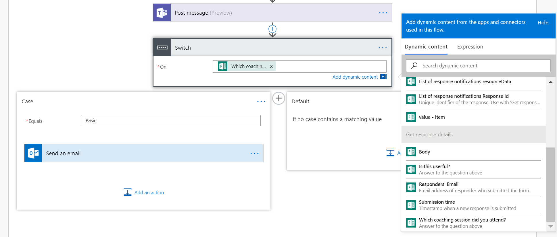Of course we want the response notifications to Teams instead of in email. But the great this, is that we can do both – and a lots of more if needed.