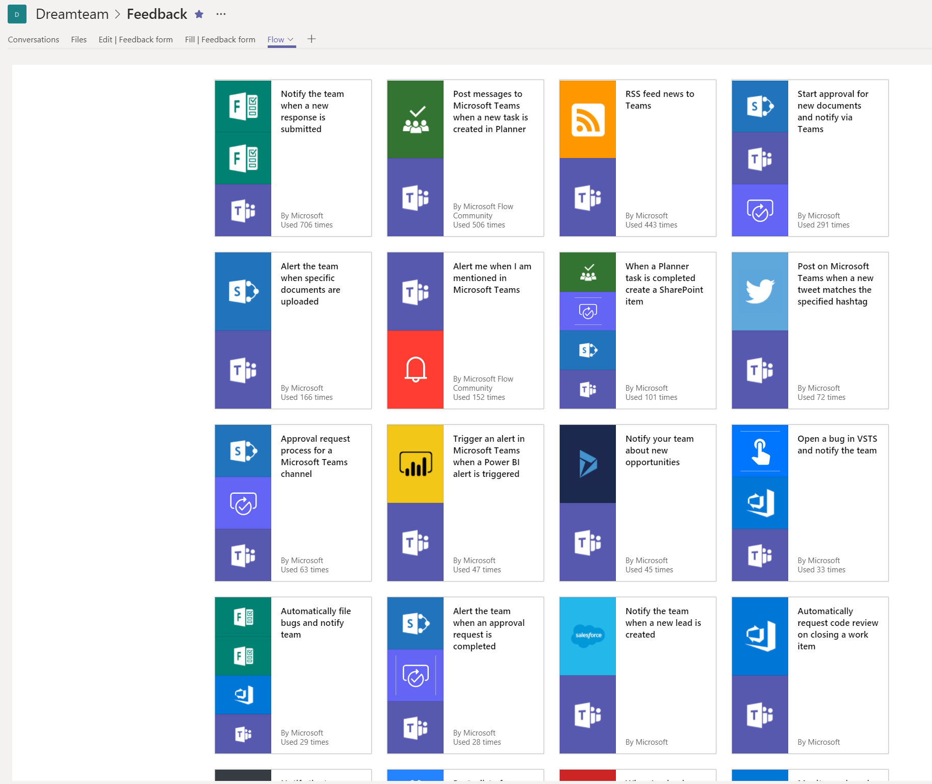 Flow tabs in Teams was recently released (6.12.2018)! This makes the Flow team owned as well, instead of creating a Flow owned by you and sharing it with your colleagues. This way Flows can be edited by any member of the team – and they are not tied to a single person for access or lifecycle control.
