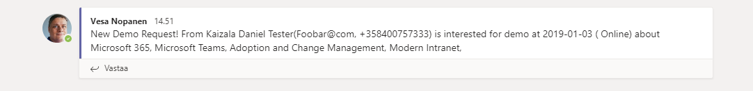 What I really like, is that with actions and Flows you can start creating more value with Kaizala – and it does has it’s place and uses in a work interface alongside with Teams. Teams part was actually really simple here, but essential to get team involved. And what would stop from adding planner task to most suitable demo responsible person automatically?