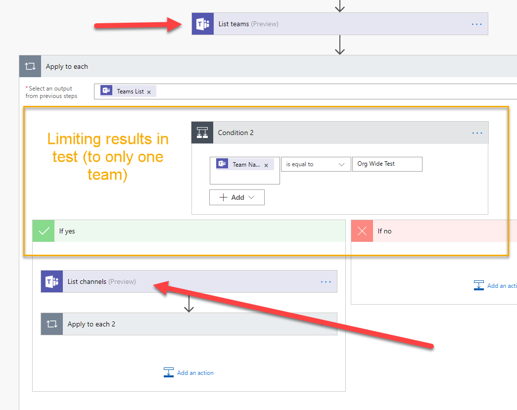 Using Teams connector makes getting Teams and Team channels very easy, thus enabling these Superpowers to many more users than just those with more developer-oriented mind.