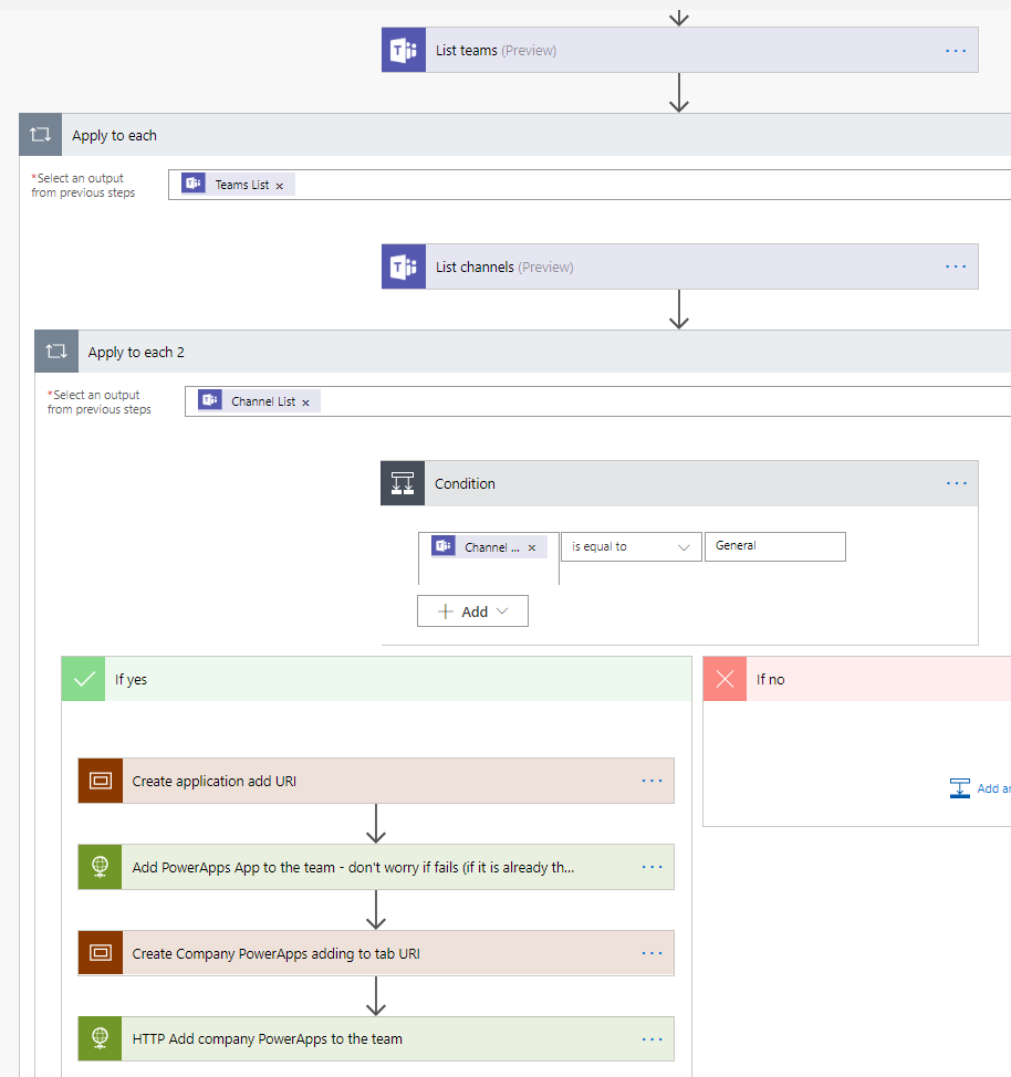 One thought on “Adding a company PowerApps to (all) teams using Flow and Graph API”