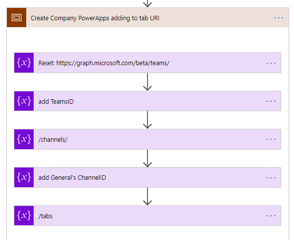 - Create HTTP Connector Post URI to add Company PowerApps to the General tab of the team