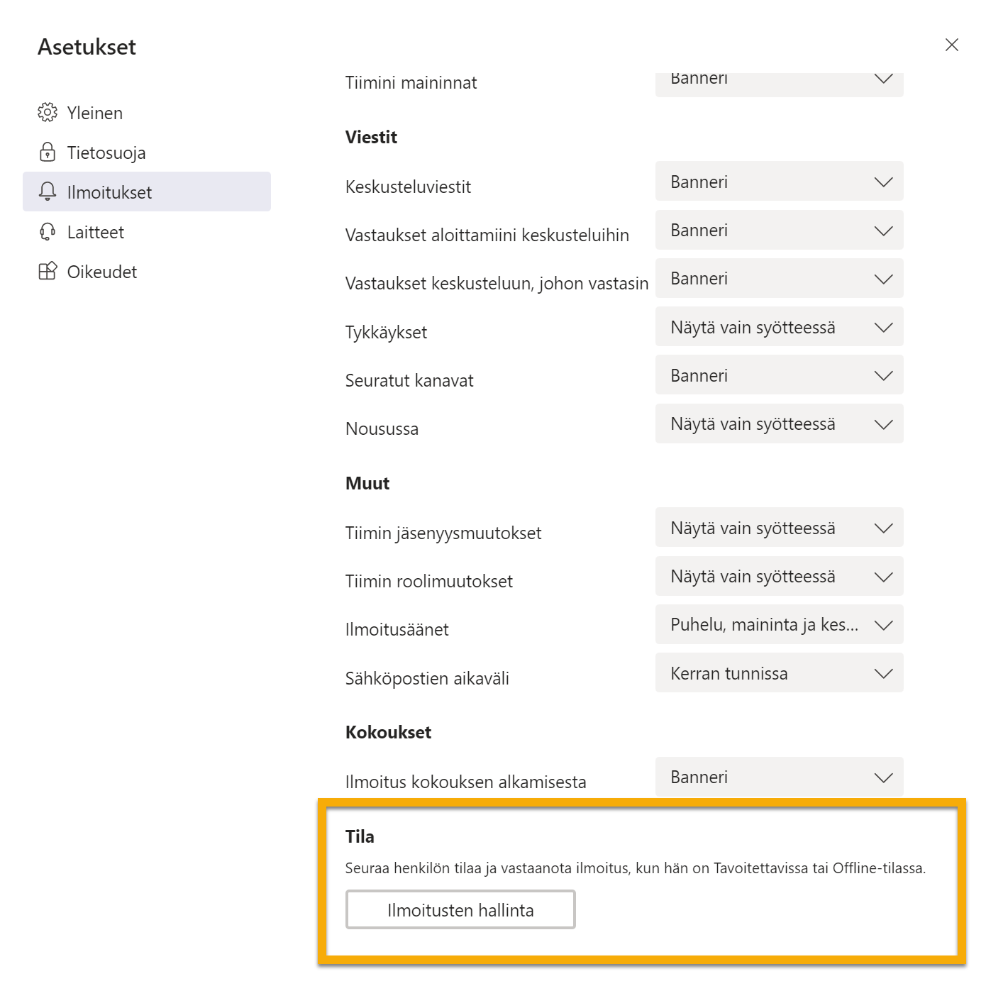 Näitä voi hallinnoida myös asetusten kautta
