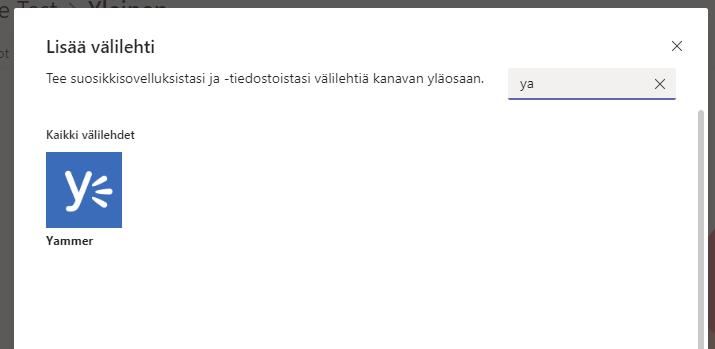 - Yammer-välilehti