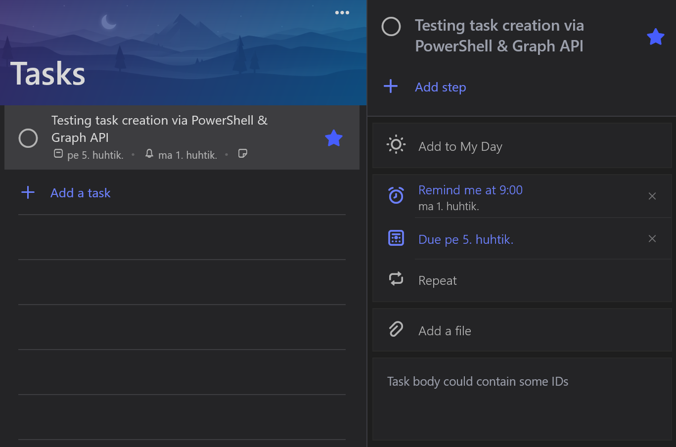 Now we know that we can create a task to personal ToDo via Graph API and we can add following information via Graph API