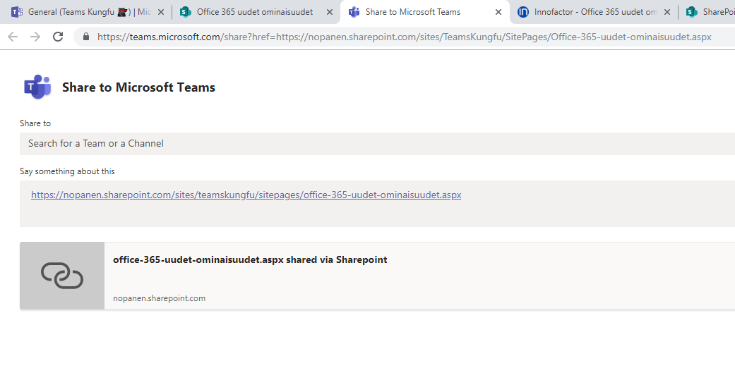 https://teams.microsoft.com/share?href=https://nopanen.sharepoint.com/sites/TeamsKungfu/SitePages/Office-365-uudet-ominaisuudet.aspx
