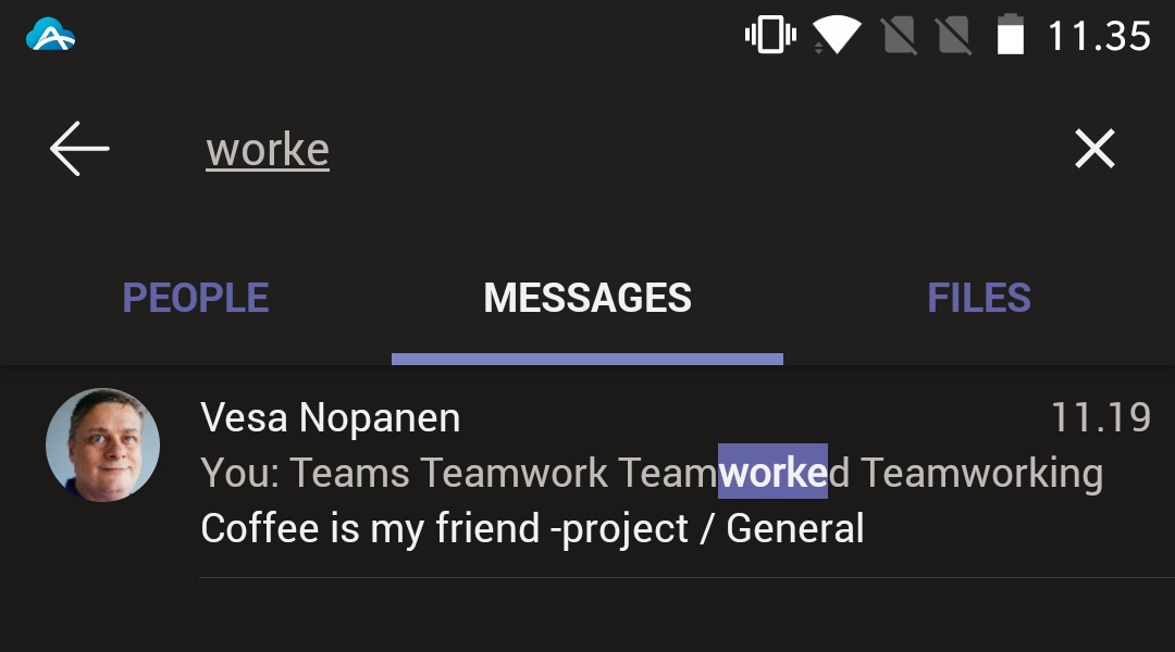 While this was a pain earlier, this has gotten better. Originally I thought Team’s search would work in 5 character blocks, but it seems to be more about matching a word (or a partial word) to a some kind of dictionary list and then looking for content via that. Effectively: you can get lucky when searching with incomplete words. Like you can search using word share to find SharePoint. But if you search with shar, sharep or something like that: you don’t get any results. Remember: wildcards don’t work so you can’t search for share* and you can’t search with point to find SharePoint.