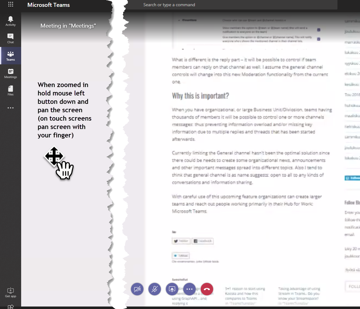 And as you notice, only the meeting content area is zoomed – not the whole Teams as would happen outside the meeting.