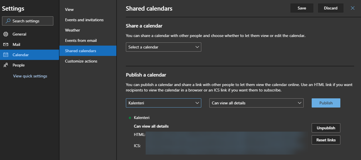 Note: some organizations may have disabled the publishing of calendar due to security concerns.