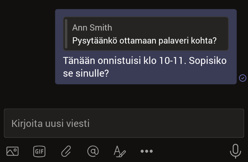 Tämän jälkeen viestiin vastataan tuttuun tapaan. Erona on, että lainattu viesti näkyy ruudulla.