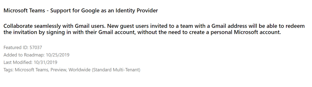 Note this one-time passcode isn’t 1:1 the roadmap item shown above. I have added a section to the end of this blog post to tell about Google authentication in federated way.
