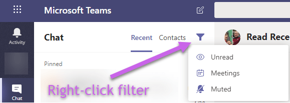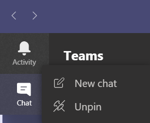Also – did you know you can start a new chat by right-clicking the Chat app in the left rail? It is a lot easier than trying to aim at the small start a new chat left of search box.