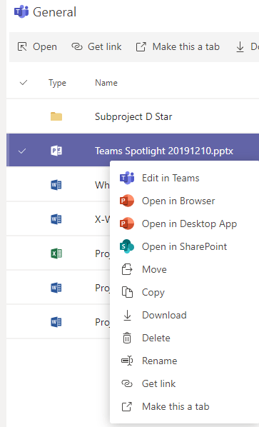 And finally if you open Files-tab you can right-click on file name to open it’s context menu. I am sure many of you already know this since it is pretty common feature across Windows and Office family.
