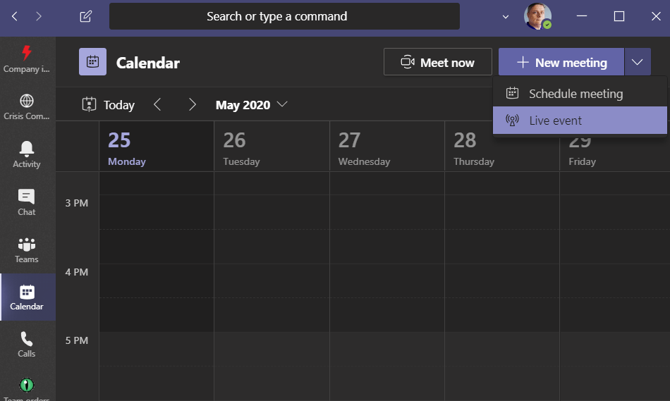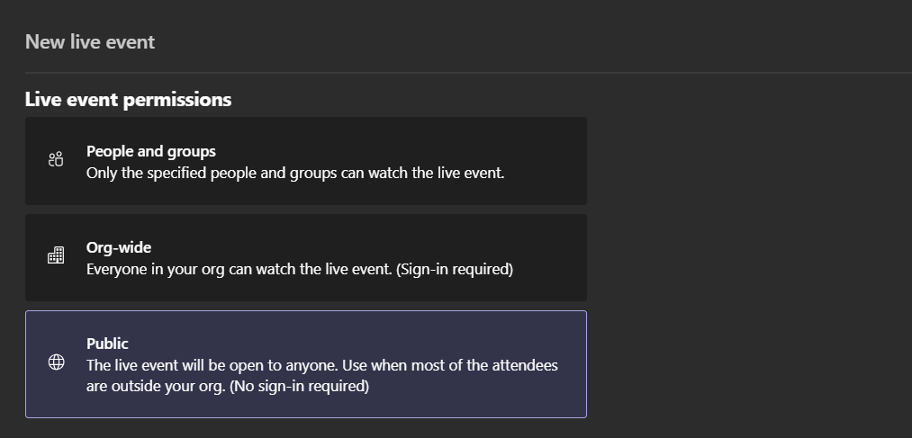 First, let’s create a Live Event to start with. There has been slight changes to UI so it is good to have an update. You can setup a Live Event with Teams web client but to present in a Live Event you always need to use Teams Desktop client.