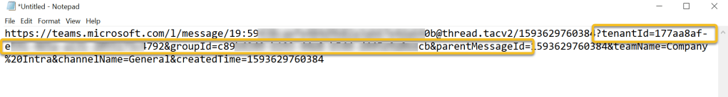 Next navigate to the team and channel you selected for this and look for a message there. Get it’s link using message’s … menu and choose “Copy link”.