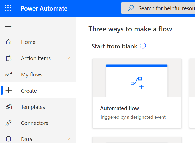 Go to Create (left navigation) and then choose Automated Flow.
