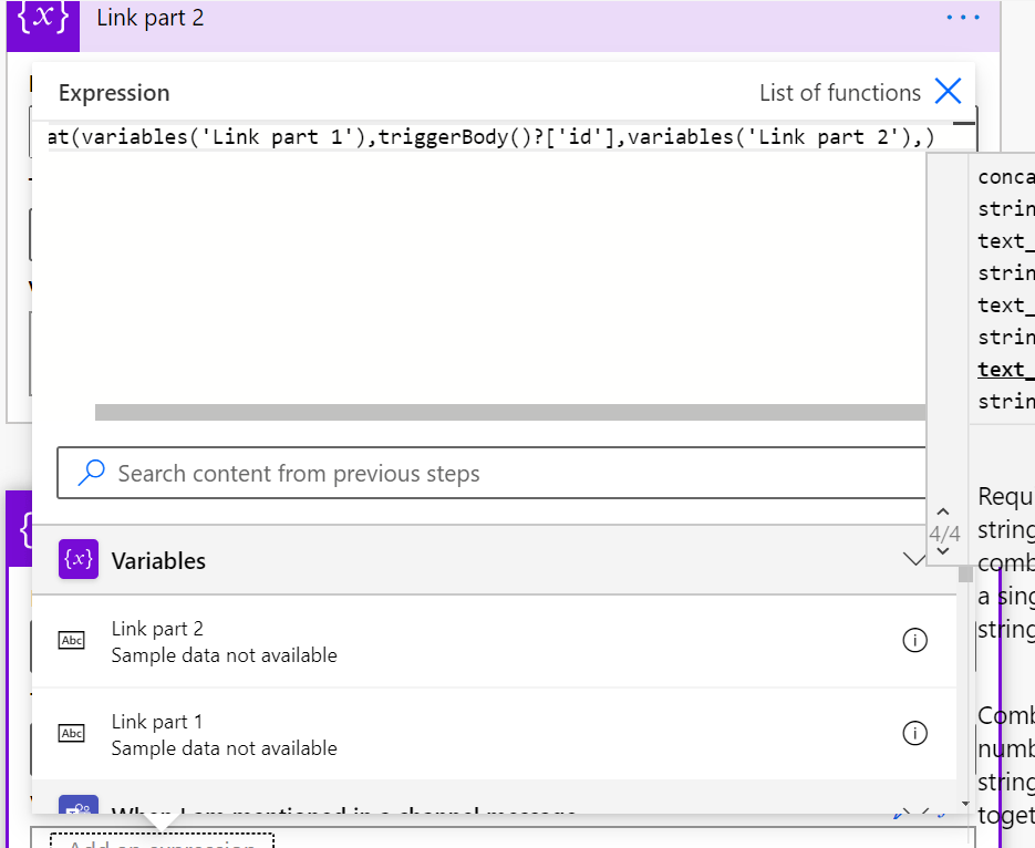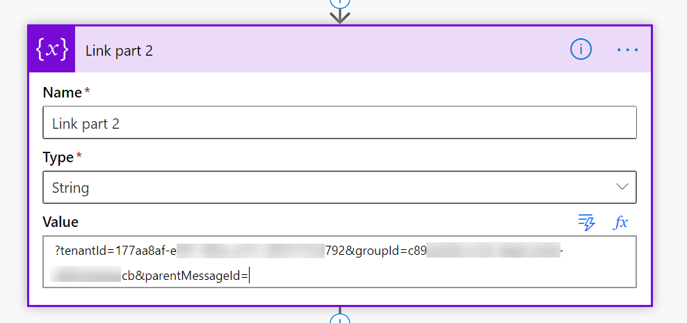 Copy the part and go back to Power Automate. Open the Link part 1 with a click: