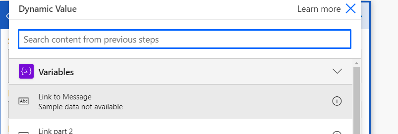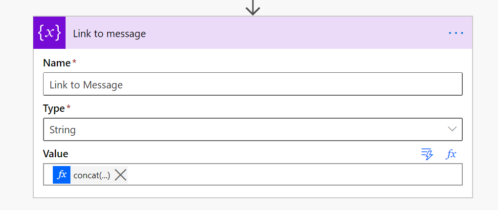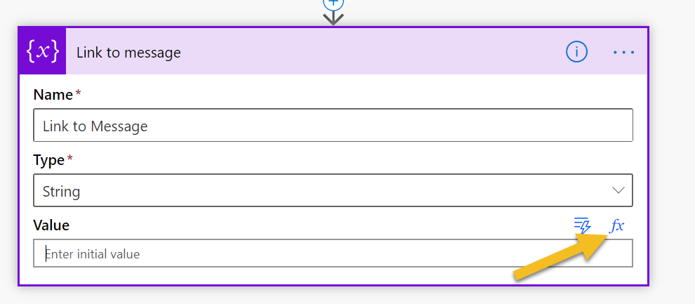 Open Link to message variable and name it “Link to Message” and also set it’s type String.