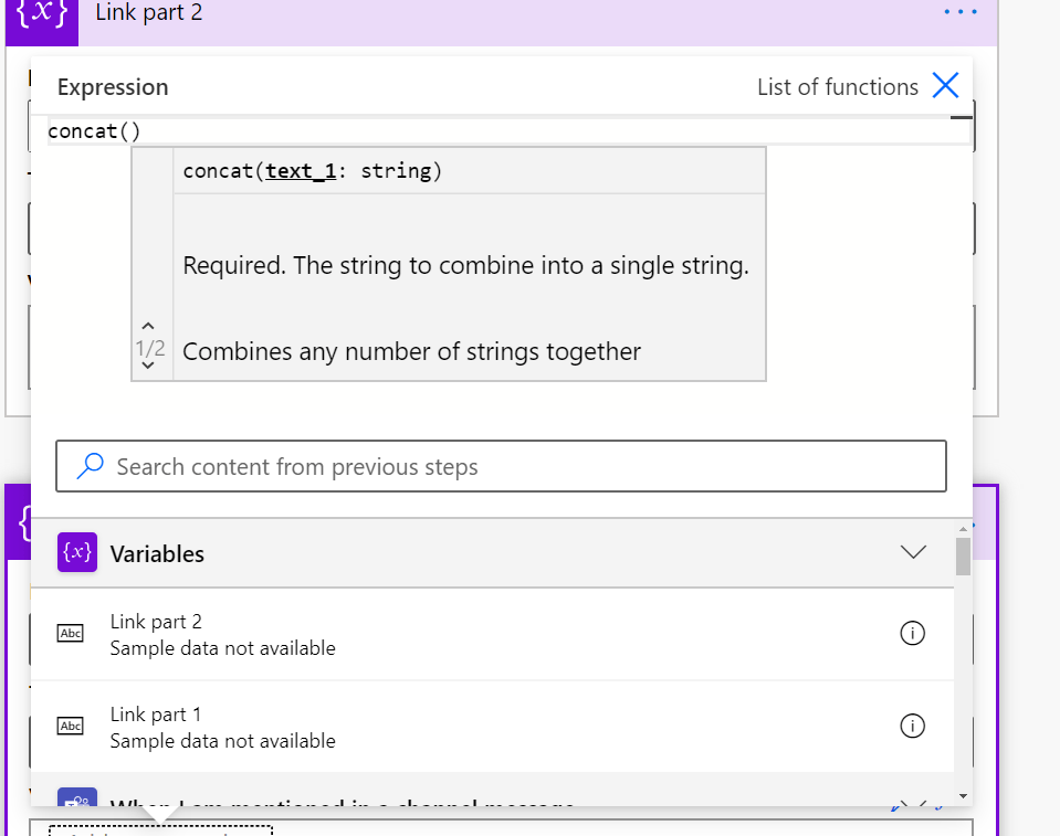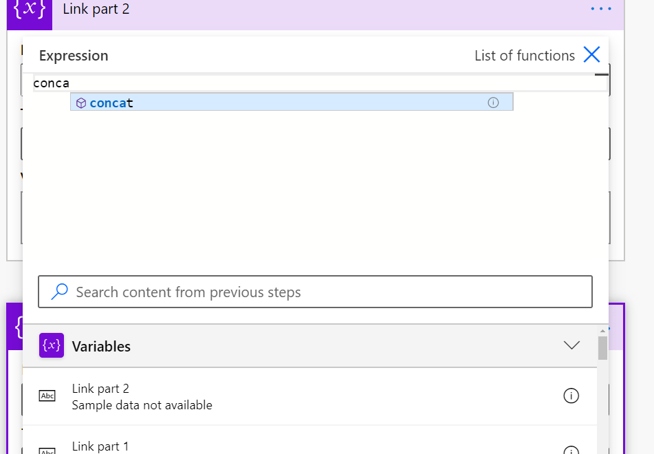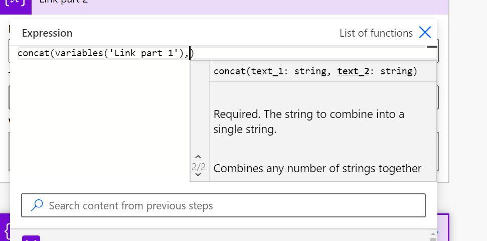 Let’s begin by clicking Link part 1 into the concat and then add comma (,) to be able to add a second part.