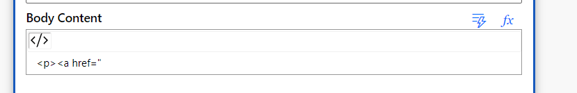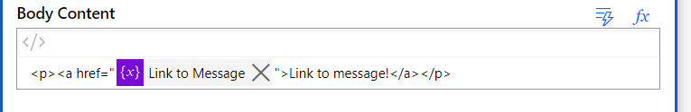 Make sure your canvas had only the beginning of the text written – you need to delete the Link to message text 🙂 . What remains could be just as simple as <p><a href=” and nothing else. Then hit the lightning icon.