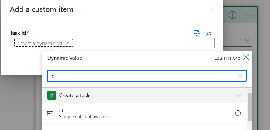 Adding that Task Id requires a bit of tweaking: