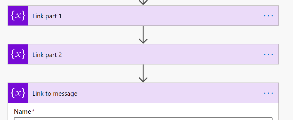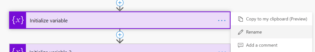 When you click on the Initialize variable it will be added. Add three of these. Then let’s go and rename them. This begins with pressing …. part on the right on Initialize variable. Choose Rename.