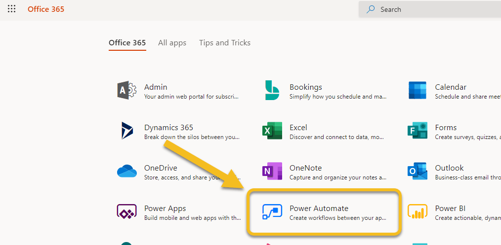 Open https://www.office.com (yes, the Office 365 start) and look for the App named Power Automate. Open it.