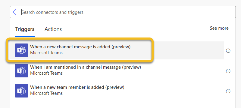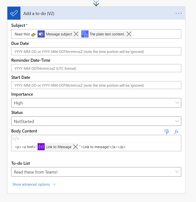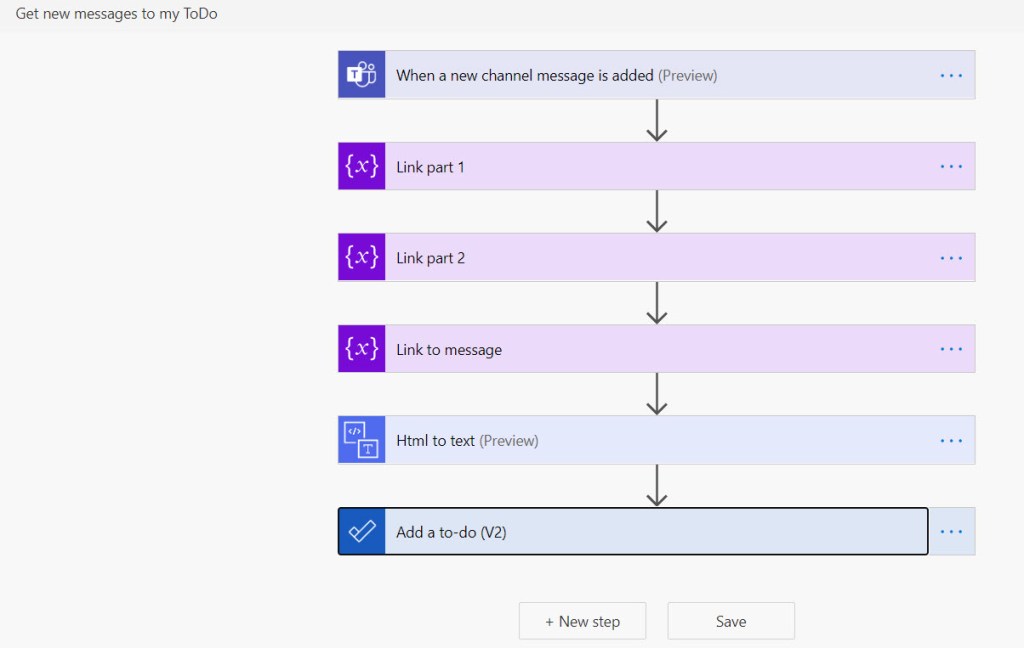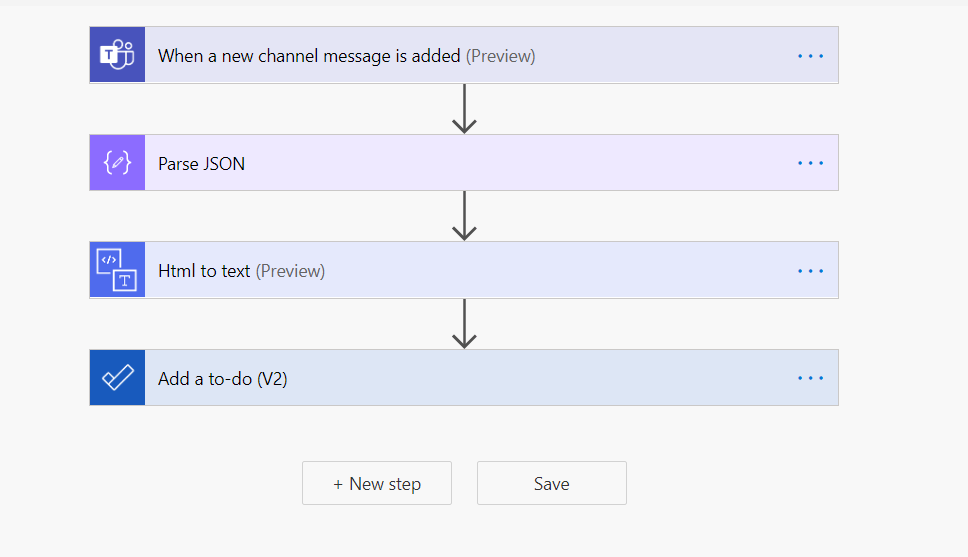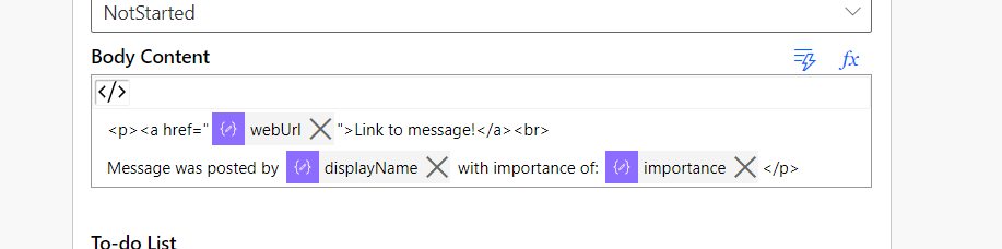 - Use information you get from the action “When a new channel message is added” to decide whether it is worthy of a ToDo task.