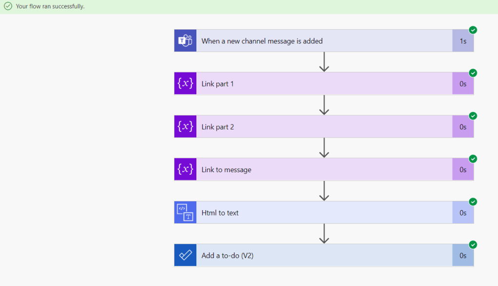 Looking at the Flow run history we can see it succeeded.