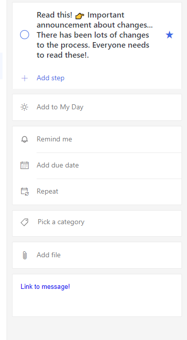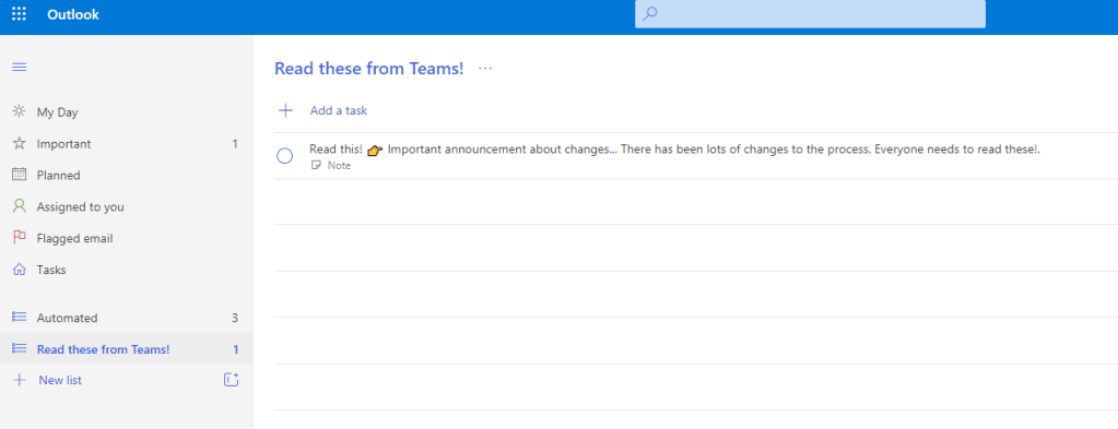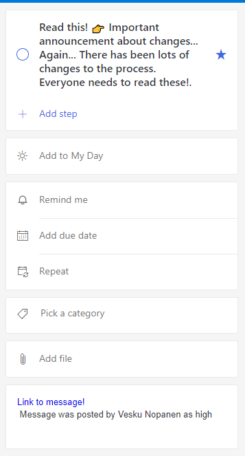 The natural place for these is usually your personal ToDo (I need to read these later) but in some cases a Team level Planner is a good option if that is a team task – not a personal one. Look to the post mentioned in the beginning of this post how to add these tasks to a team Planner.