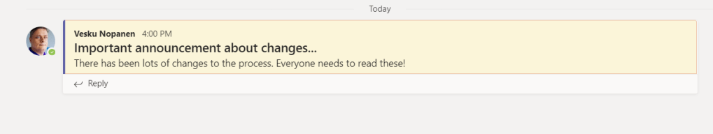 And clicking the “Link to message” opens the right message in Teams and highlights it for a moment! Success!