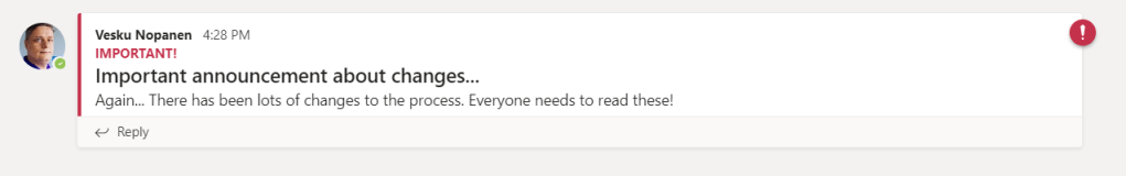 Another, a bit similar but usually purely personal, matter is to keep track of messages written to specific channels. Most of the people just use channel notifications (set for all new messages) but in a situation where you are still getting too many notifications that won’t be the answer. Examples of these can be news/announcements, updates to instructions, changes to practices etc. These also work the best when those channels either have a moderation in place or they don’t get that much messages that are not related to the matter.
