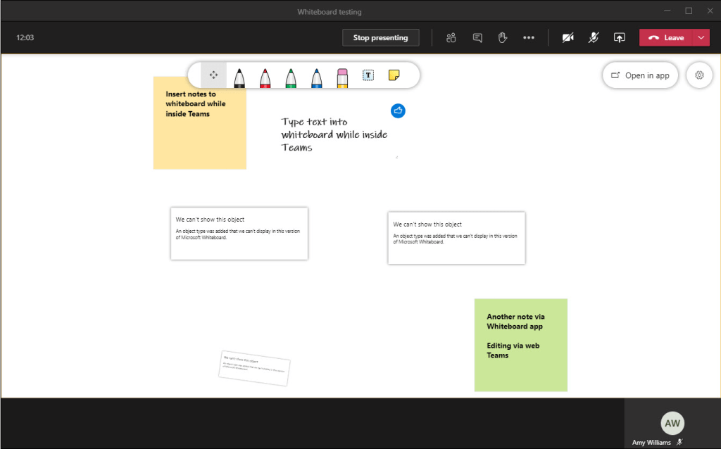 The Whiteboard app has still mostly the same capabilities than before. It is important to understand and to know that not all objects are seen on the web/Teams version of the whiteboard.