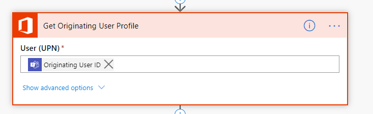 The Get Sender Profile I used to get an example of adding two users to the meeting. What is really needed is the Get Originating User Profile to book a meeting with the person who wrote the message in Teams channel. From “For a selected message” -trigger we get this information, but it is a ID so we need to retrieve user profile to get the email we can use in the meeting.