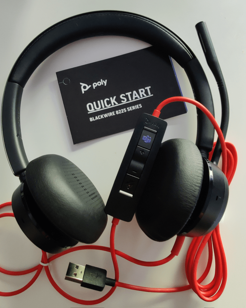 - I use Poly Blackwire 8225 occasionally – for short periods of time. Especially on a hot end of summer day it was sometimes great to have a less sweaty option available or when you need a backup headset (or use it on another device).
