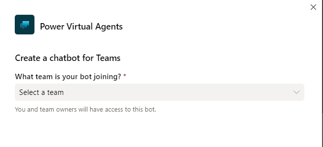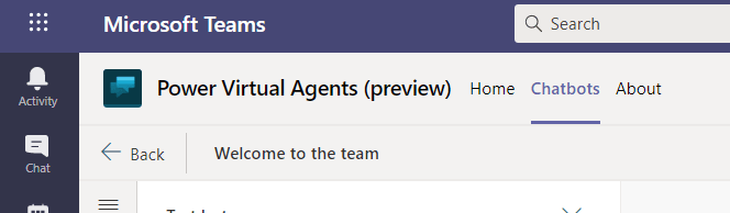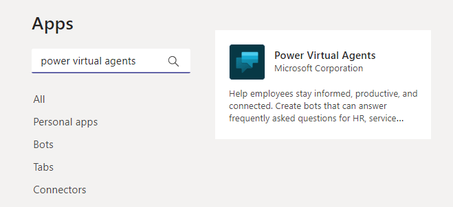 Start by going to the Teams app store and installing Power Virtual Agents -app to your Teams.
