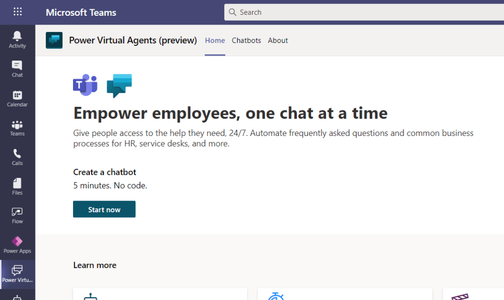 Power Virtual Agents in Teams come included in the Teams licensing and don’t require extra add-ons. These are perfect to start creating more bots in your organization.