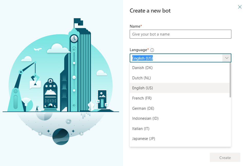 Give your a bot a nice friendly name and choose it’s language. There are several languages available already (even Swedish, Dutch and Japanese) but no – no Finnish. Not yet at least.
