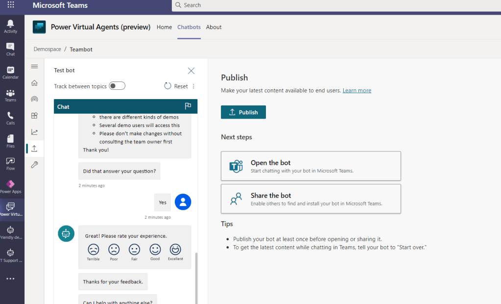 While Power Virtual Agents in Teams have some limits compared to the separately paid version these are very powerful and can be used to empower teams to do much more.
