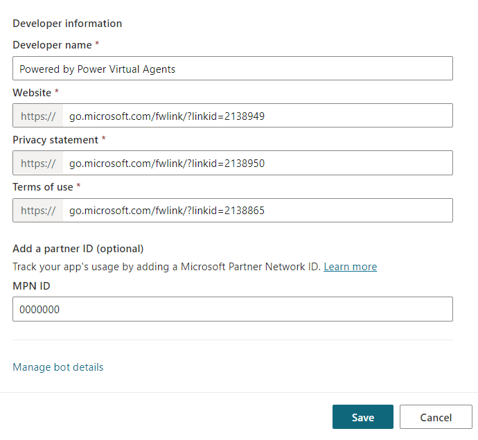 As you can see you can edit the name, description, icon and also the developer information! Going with defaults is ok in the demo but organizations should always fill up Privacy statement and other links with proper ones.