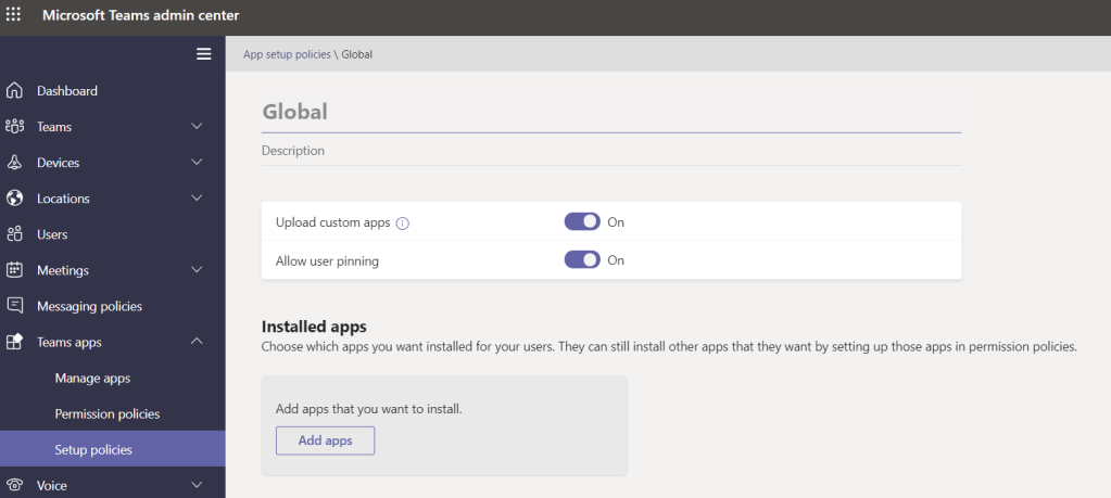 Meanwhile Admin can go to Teams Apps – Setup Policies and install the app automatically for everyone.
