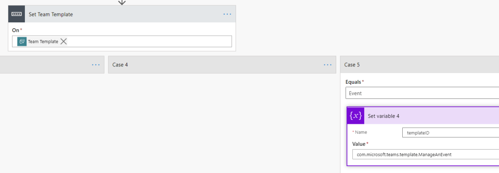 For example in my Power Virtual Agent I ask from the user to choose the team type and then switch it to templateID variable in a Flow.