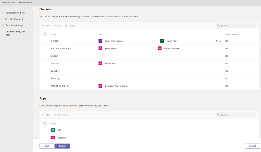 Yes – it is this simple to start really utilizing those templates! What I really like them is that you can use Teams Admin center to centrally define structure of those teams (channels and apps) to make sure teams get created with the right components. Previously this required the use of SharePoint list or CDS or some other data source to create template definitions. Now there is an UI for that.