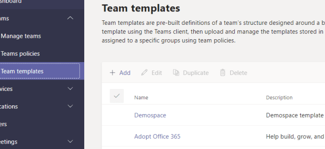 More interesting part is the Teams Admin Center where is a section for Team templates.