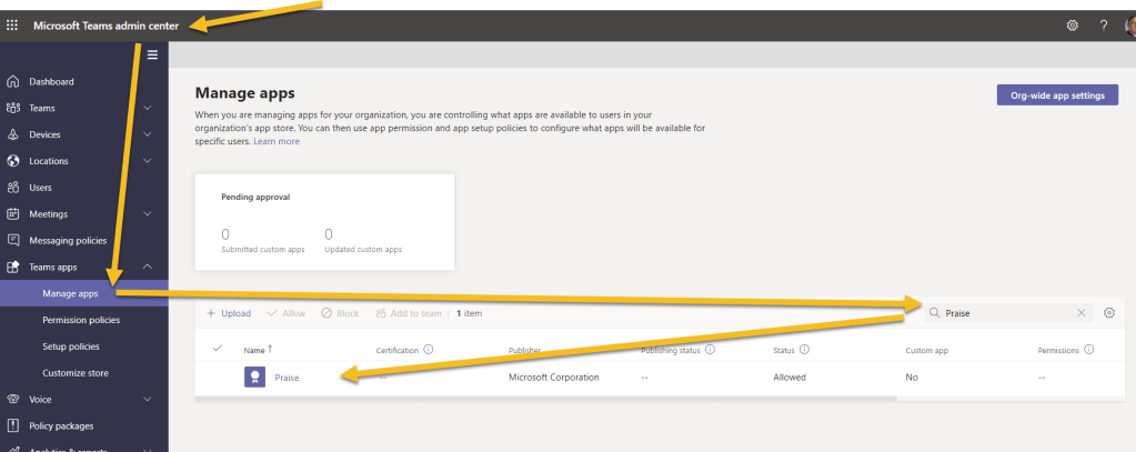 - Navigating to Teams Apps – Manage apps