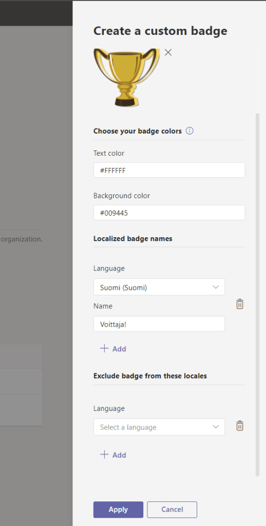 Let’s add a Finnish name “Voittaja!” for this badge