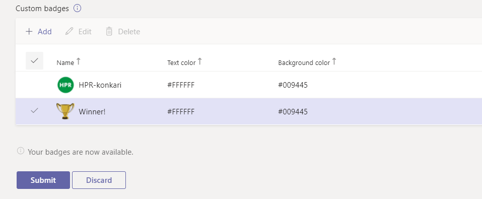 You can add and edit more badges and once you are done you hit Submit.