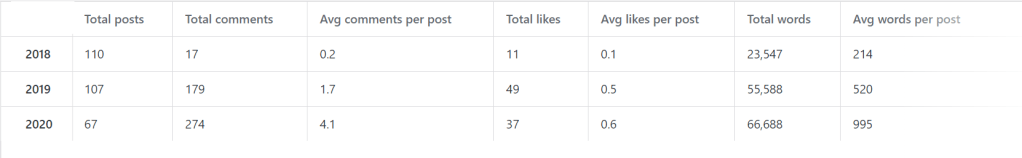In the year 2020 I published 67 blog posts (including this one) to this date.